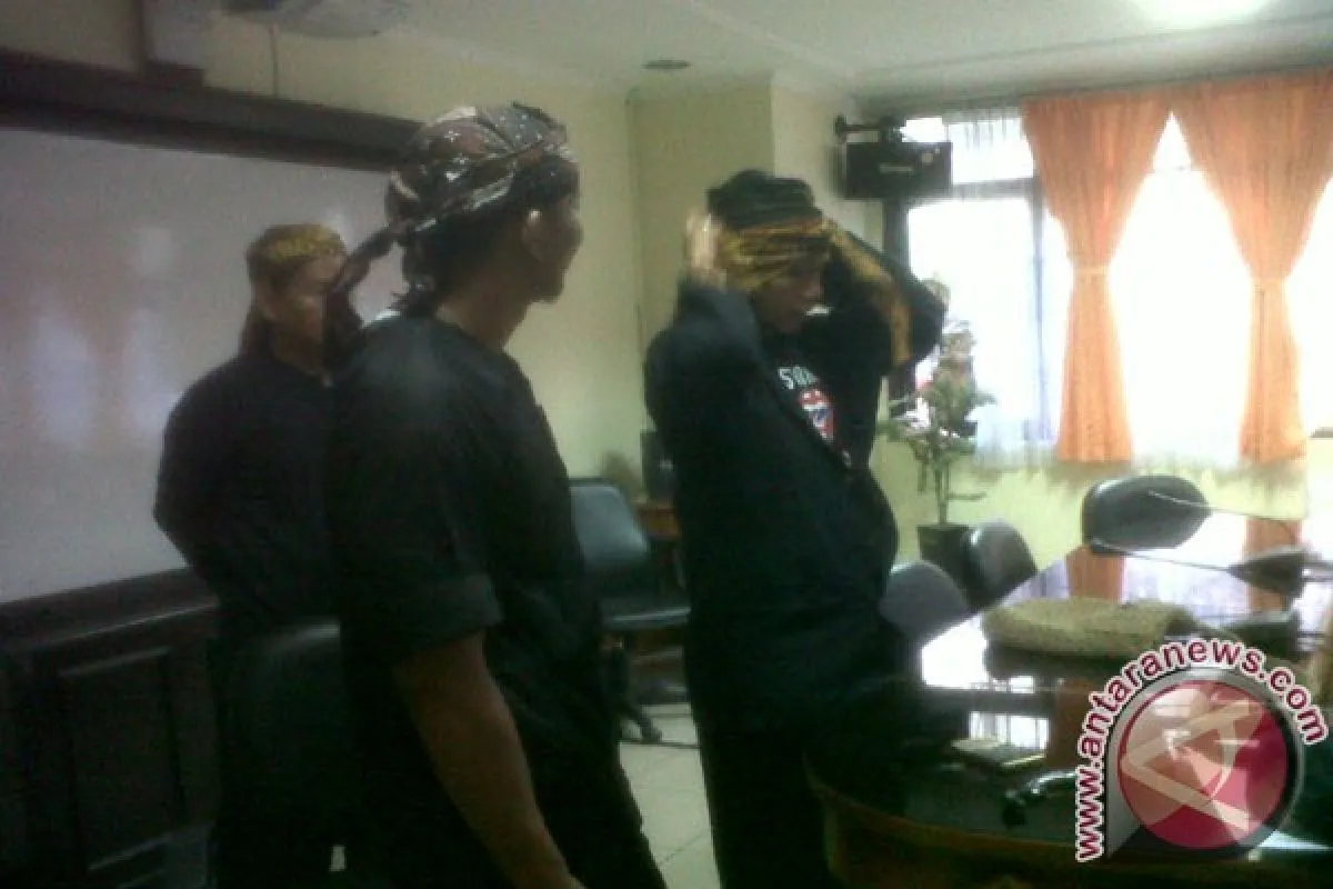 Ketua DPRD praktekkan cara pake totopong "Rebo Nyunda". (Foto Antara/ Laily Rahmawati)