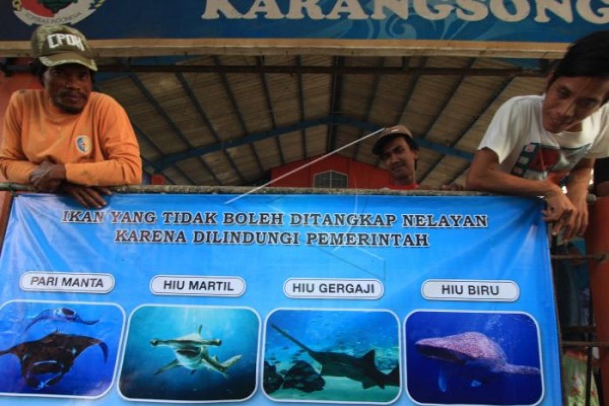 Ilustrasi - Sejumlah nelayan mengamati spanduk bergambar jenis ikan yang dilarang ditangkap. Pemerintah telah mengeluarkan larangan untuk menangkap atau memburu jenis ikan yang dilindungi seperti Pari manta, Hiu martil, Hiu gergaji dan Hiu biru. (ANTARA FOTO/Dedhez Anggara/Koz/pd/15).