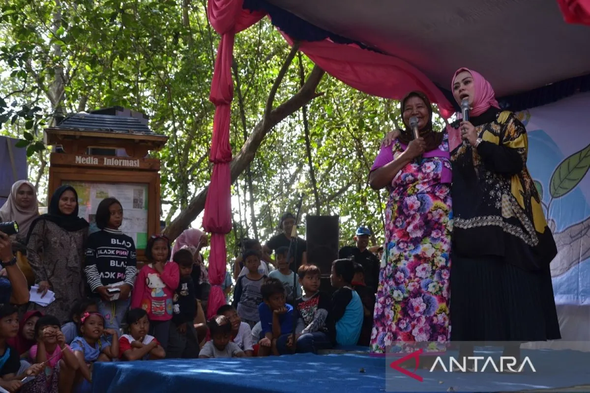 Bupati Karawang Cellica Nurrachadiana (kanan) saat berbincang dengan warga. (ANTARA/Ali Khumaini/dok)