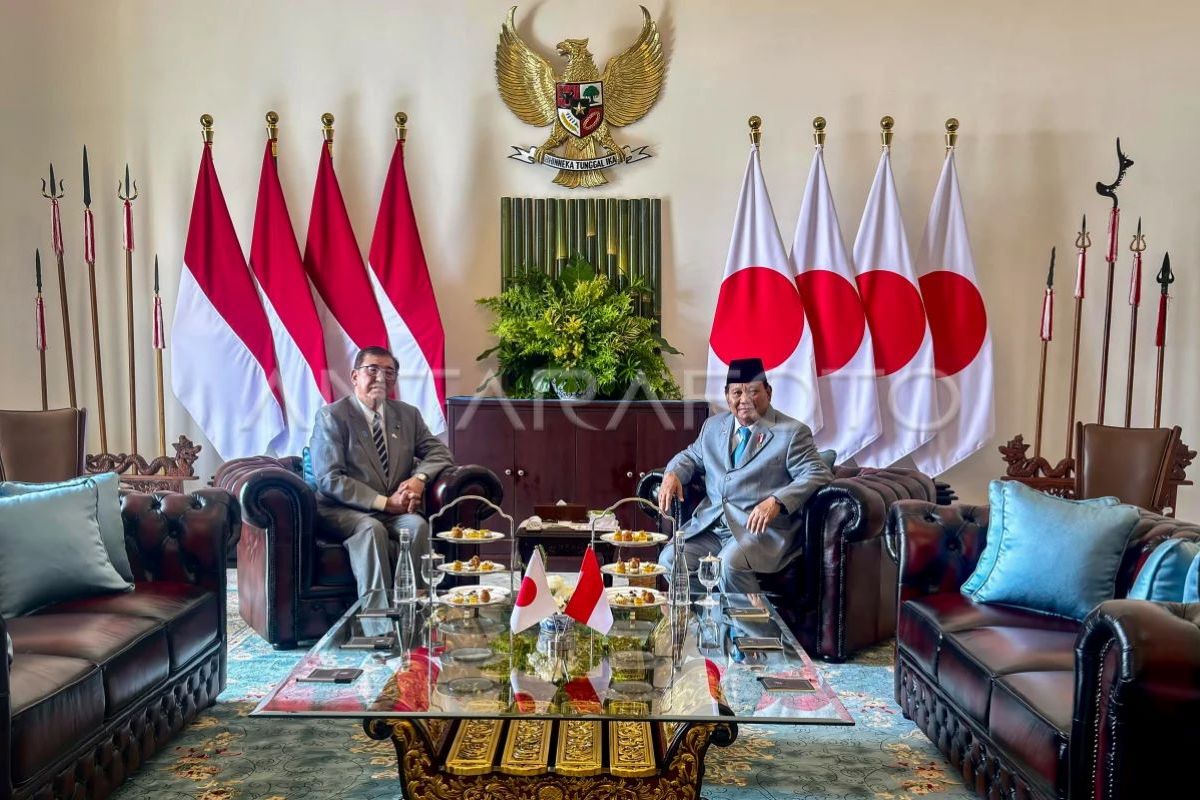 Presiden Prabowo Subianto (kanan) dan Perdana Menteri Jepang Shigeru Ishiba (kiri) duduk bersama di ruang kerja Presiden saat kunjungan kenegaraan di Istana Bogor, Kota Bogor, Jawa Barat, Sabtu (11/1/2025). Kunjungan kenegaraan Perdana Menteri Jepang Shigeru Ishiba ke Indonesia untuk membahas sejumlah kerja sama antara kedua negara.