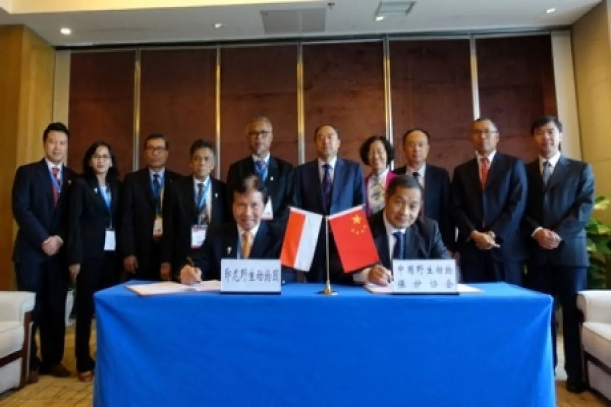 Dirjen Konservasi Daya Alam dan Ekosistem (KSDAE) Kementerian Lingkungan Hidup dan Kehutanan Tachrir Fathoni usai melakukan penandatanganan MoU Konservasi Panda (Giant Panda) dengan Vice Minister for The State Forestry Administration of People Repu