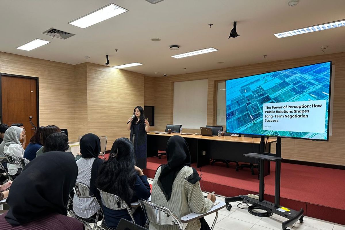 Sementara itu, Michelle Arsjad, pendiri dan CEO Aquabloom startup bioteknologi berbasis pemanfaatan rumput laut Indonesia, serta mantan konsultan McKinsey & Company dan Asisten Staf Khusus Presiden RI mengisi sesi mata kuliah Teknik Negosiasi Kehumasan Dalam materi bertajuk “The Power of Perception: How Public Relations Shapes Long-Term Negotiation Success”, Michelle menyajikan pendekatan praktis dalam membangun posisi negosiatif yang kuat, etis, dan berdampak jangka panjang.