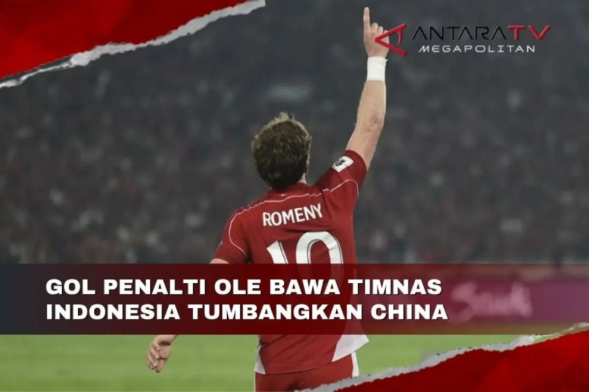 Timnas Indonesia meraih kemenangan penting atas China dalam lanjutan Kualifikasi Piala Dunia zona Asia Grup C di Stadion Gelora Bung Karno, Senayan, Jakarta, Kamis (5/6). Indonesia menang atas China lewat gol tunggal yang diciptakan Ole Romeny dari tendangan penalti. (Putri Hanifa/Anggah/Yovita Amalia/Rijalul Vikry)