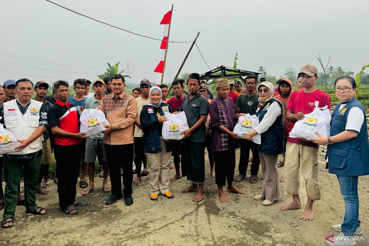 Bantuan disalurkan langsung di Bogor, Minggu, ke tiga dusun yang terdampak banjir di mana kolam ikan milik warga terendam dan menyebabkan para petani gagal panen.