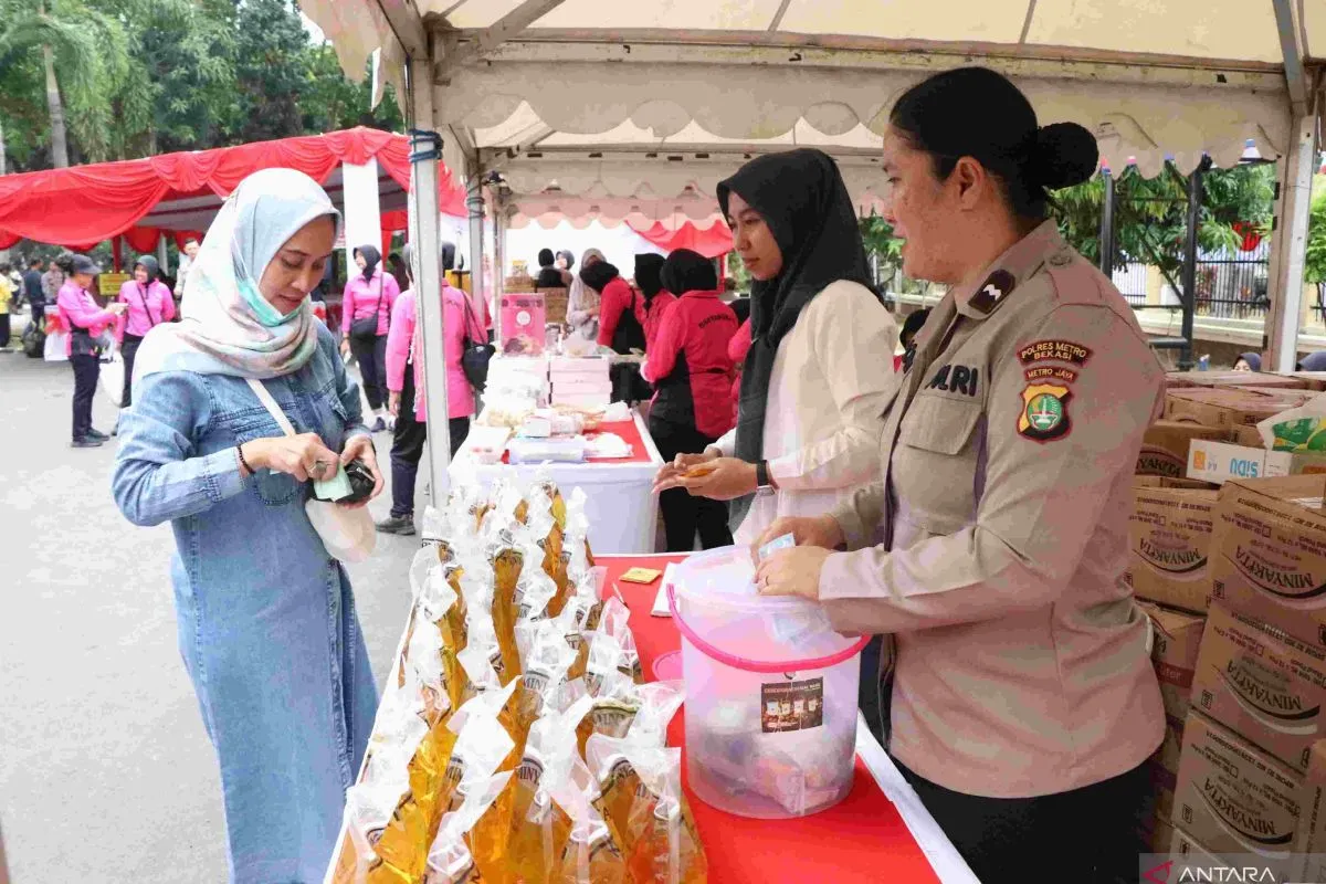 Kabupaten Bekasi (ANTARA) - Kepolisian Resor Metropolitan Bekasi bekerja sama dengan Perum Bulog menyediakan paket sembako dengan harga terjangkau untuk warga melalui mekanisme Gerakan Pangan Murah (GPM) yang berlangsung di halaman Mapolres setempat.