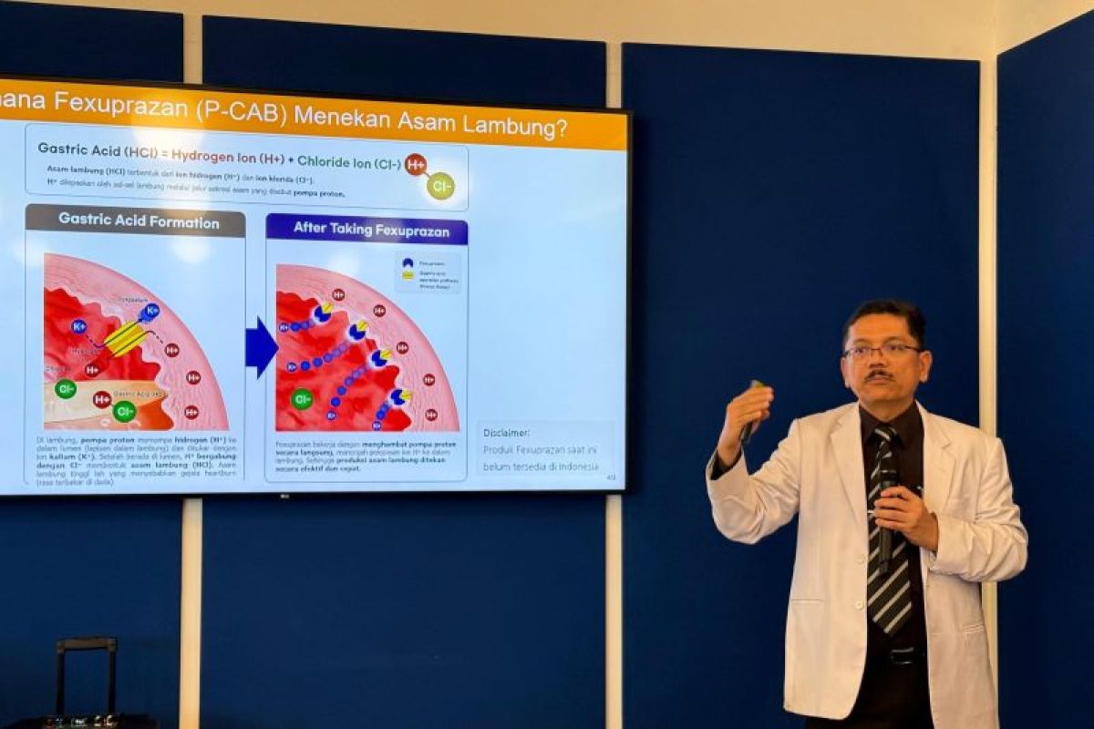 Dia menjelaskan Potassium Competitive Acid Blocker (P-CAB) merupakan obat golongan baru yang dikembangkan sebagai inovasi obat asam lambung yang bekerja dengan mekanisme yang berbeda dengan obat yang dikenal selama ini.