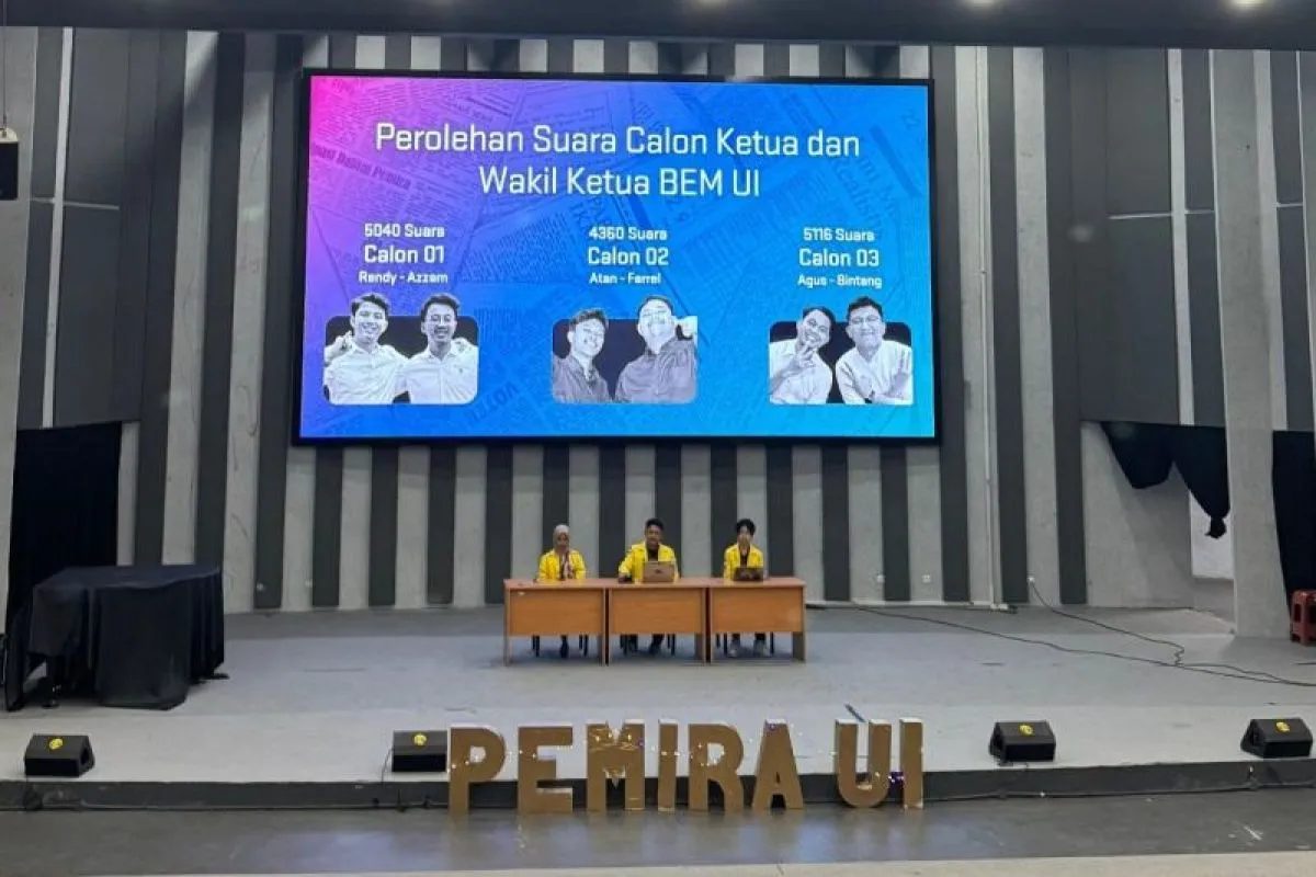 Depok (ANTARA) - Universitas Indonesia (UI) melalui Surat Keputusan Rektor pada 7 Maret 2025 mengesahkan Agus Setiawan dan Bintang Maranatha Utama (Agus-Bintang) sebagai Ketua dan Wakil Ketua Badan Eksekutif Mahasiswa (BEM) UI periode 2025.