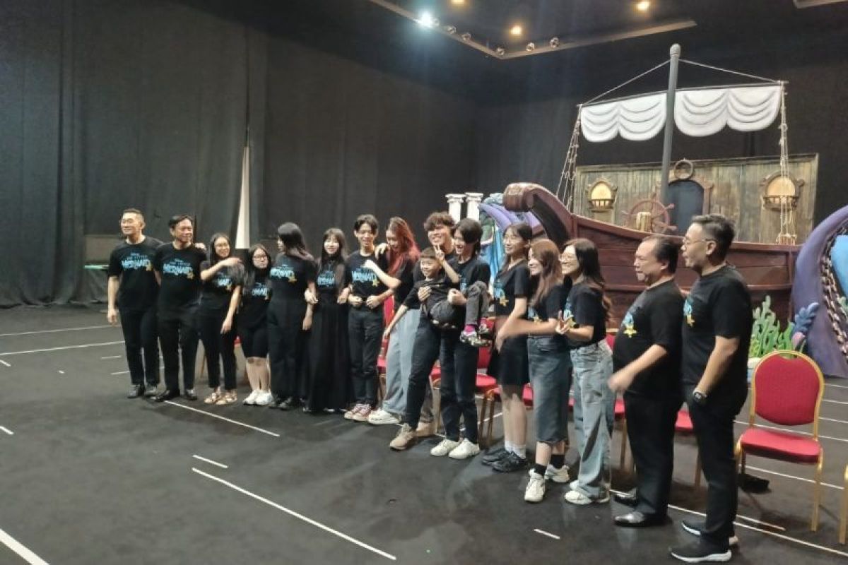 Pemeran pertunjukan drama musikal Little Mermaid berfoto bersama sebelum mengikuti latihan di salah satu hotel di Jakarta Barat, Kamis (18/9/2025). (ANTARA/Dokumen Pribadi)