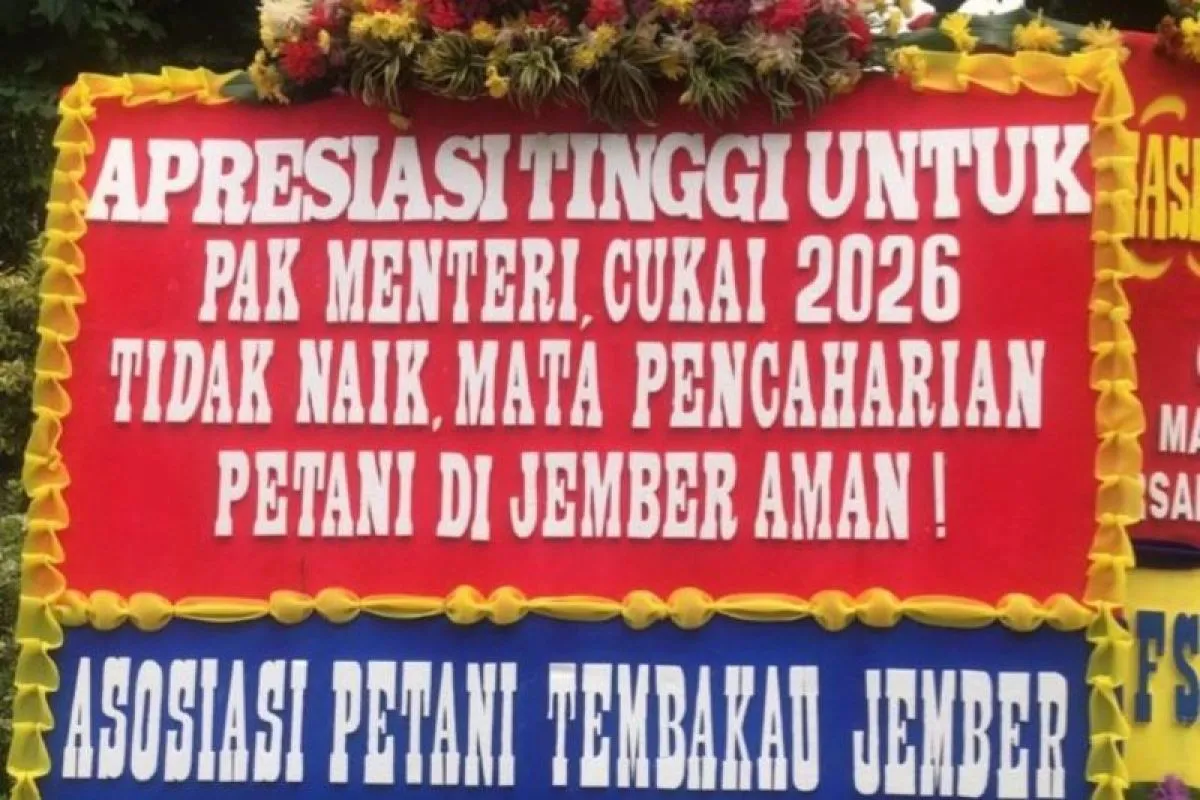 Dukungan petani tembakau terhadap Menkeu Purbaya yang tidak menaikkan tarif cukai hasil tembakau (CHT) pada tahun 2026. (ANTARA/istimewa)
