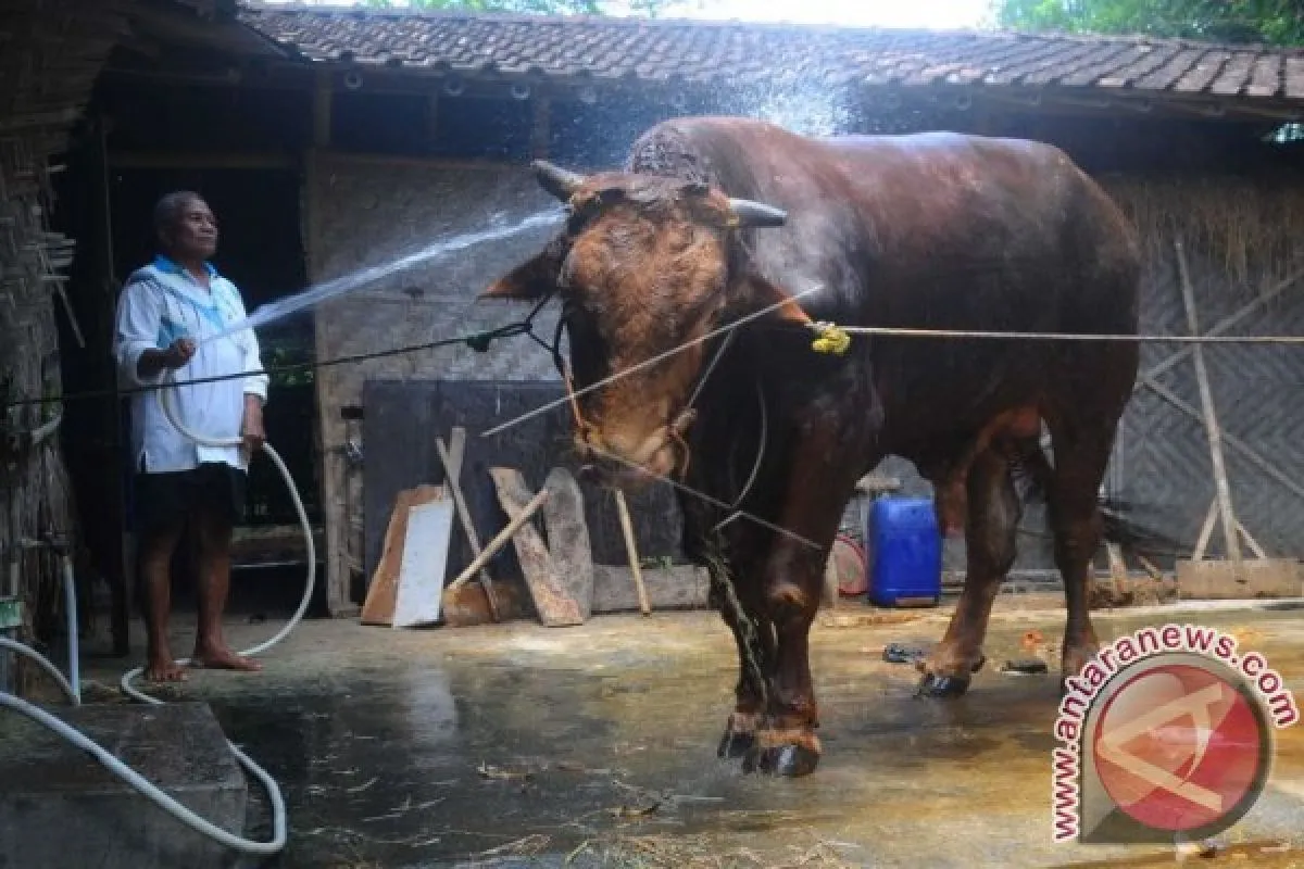 Ilustrasi - Seorang peternak sedang memandikan sapinya yang dipelihara di Menjing, Pandeyan, Ngemplak, Boyolali, Provinsi Jawa Tengah. Sapi jenis Limosin tersebut memiliki bobot seberat 1,2 ton yang siap dijual untuk kebutuhan kurban Idul Adha 1437 H/2016 M dengan harga Rp75 Juta. (Megapolitan.Antaranews.Com/Foto: ANTARA FOTO/Aloysius Jarot Nugroho/Dok).