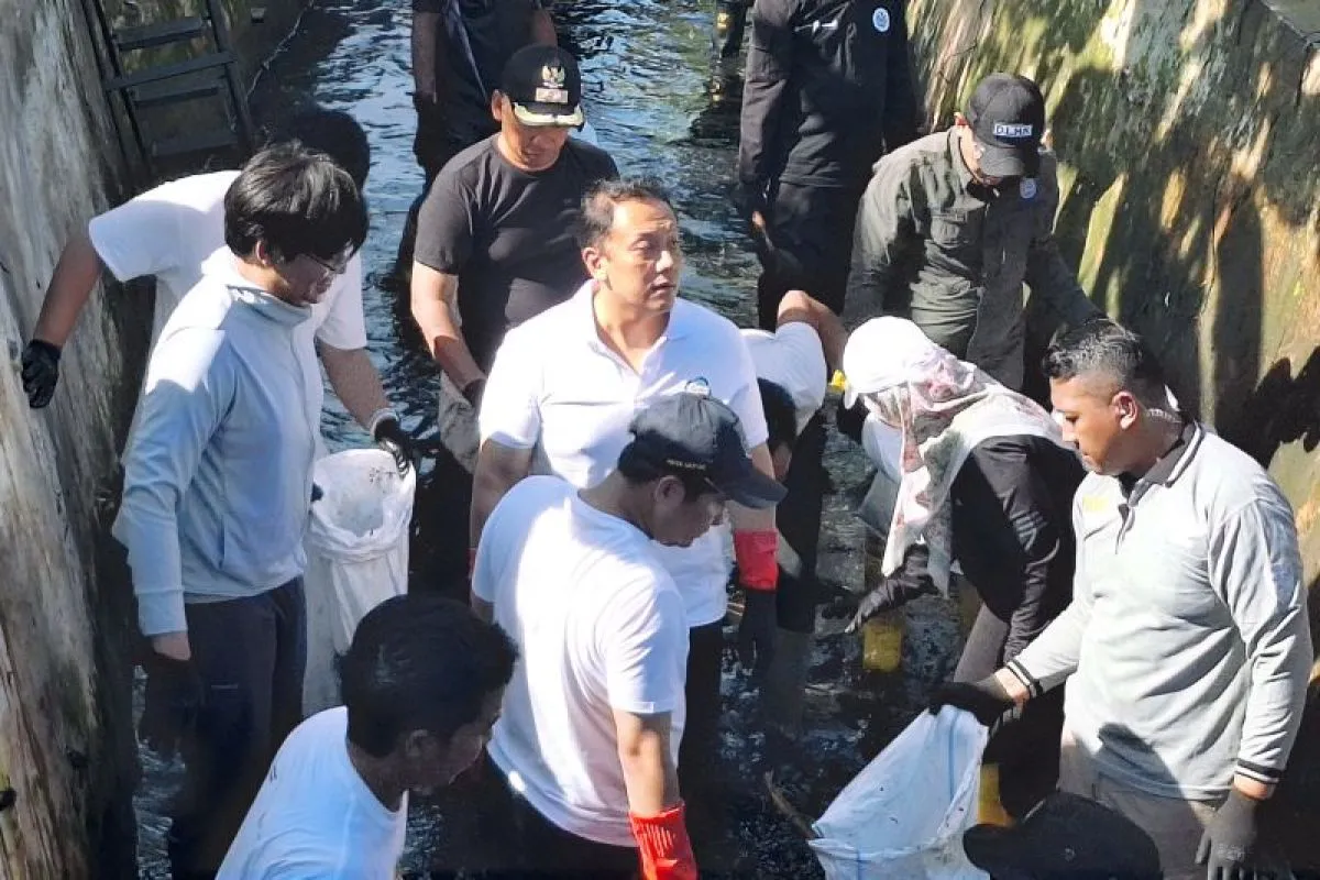 Depok (ANTARA) - Kementerian Lingkungan Hidup/Badan Pengendalian Lingkungan Hidup (KLH/BPLH), bersama Komunitas Peduli Sungai Cipinang dan Pemerintah Kota Depok, kembali menggelar Aksi Bersih Sungai Cipinang di Segmen I, Kelurahan Cisalak Pasar, Kecamatan Cimanggis, Depok.