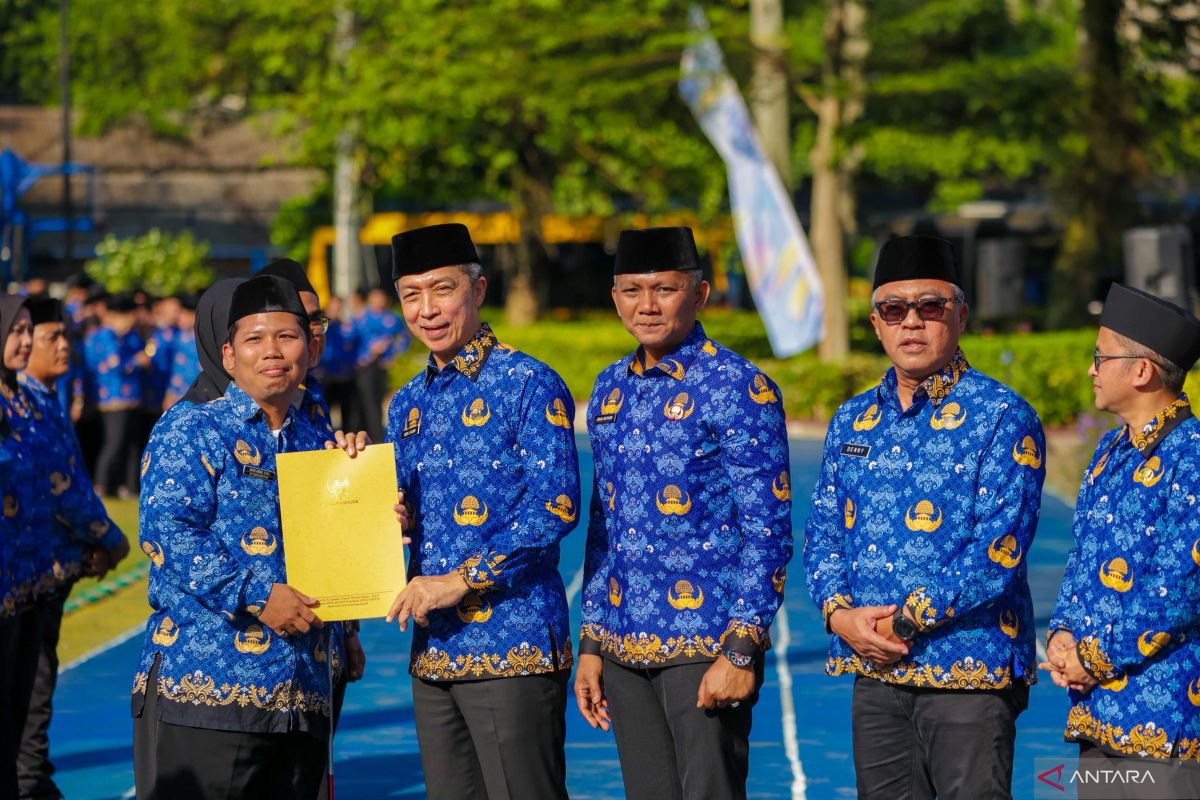 Kabupaten Bogor (ANTARA) - Wali Kota Bogor Dedie A Rachim menyerahkan SK Pengangkatan 3.868 PPPK paruh waktu dalam peringatan HUT ke-54 Korpri tingkat Kota Bogor, Jawa Barat, di Lapangan Sempur, Senin.