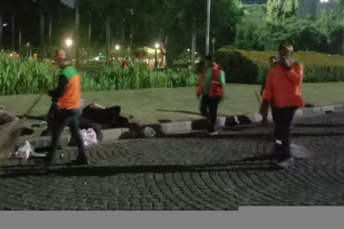 Area dalam Monas hingga seluruh Jalan Medan Merdeka tidak luput dari pembersihan petugas. Pengangkutan sampah dimulai dari pukul 00.00 hingga 03.00 WIB.