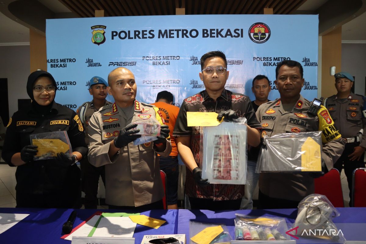 Kabupaten Bekasi (ANTARA) - Kepolisian Resor Metropolitan Bekasi meringkus dua orang pemuda berinisial DVH dan ES setelah terbukti melakukan tindak pidana memalsukan serta mengedarkan uang rupiah kertas di wilayah hukum Kabupaten Bekasi, Jawa Barat.
