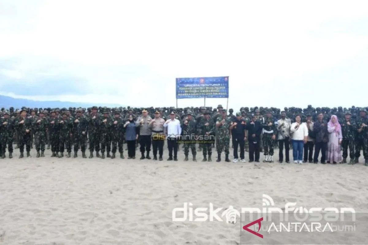 Wakil Bupati Sukabumi Andreas, sebagaimana informasi dari Diskominfosan Kabupaten Sukabumi, menghadiri upacara penutupan Pembinaan Juang dan Tradisi Pelopor bagi Bintara dan Tamtama Resimen II Pasukan Pelopor Korps Brimob di Pantai Pondok Dewata, Palabuhanratu. .