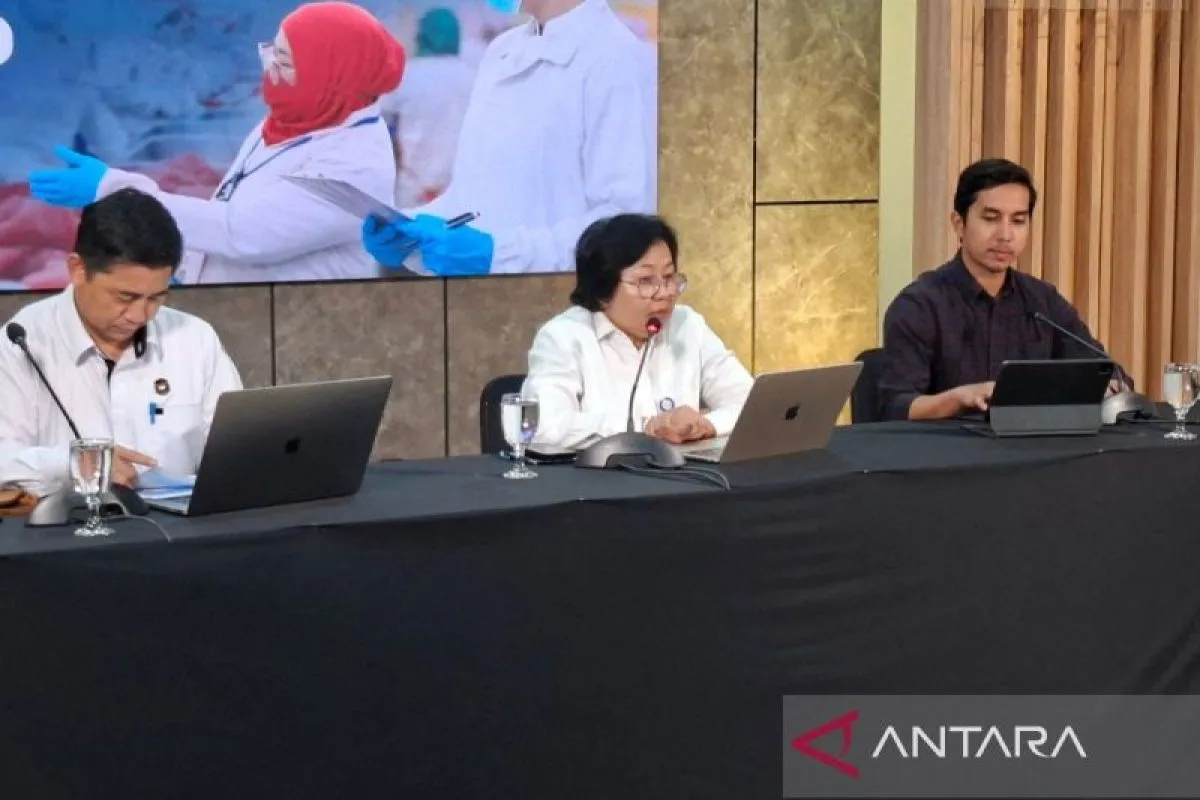 Kepala Badan Pengendalian dan Pengawasan Mutu Hasil Kelautan dan Perikanan atau Badan Mutu KKP Ishartini (tengah) menyampaikan keterangan kepada wartawan dalam konferensi pers di Jakarta, Kamis (11/12/2025). (ANTARA/Aji Cakti)