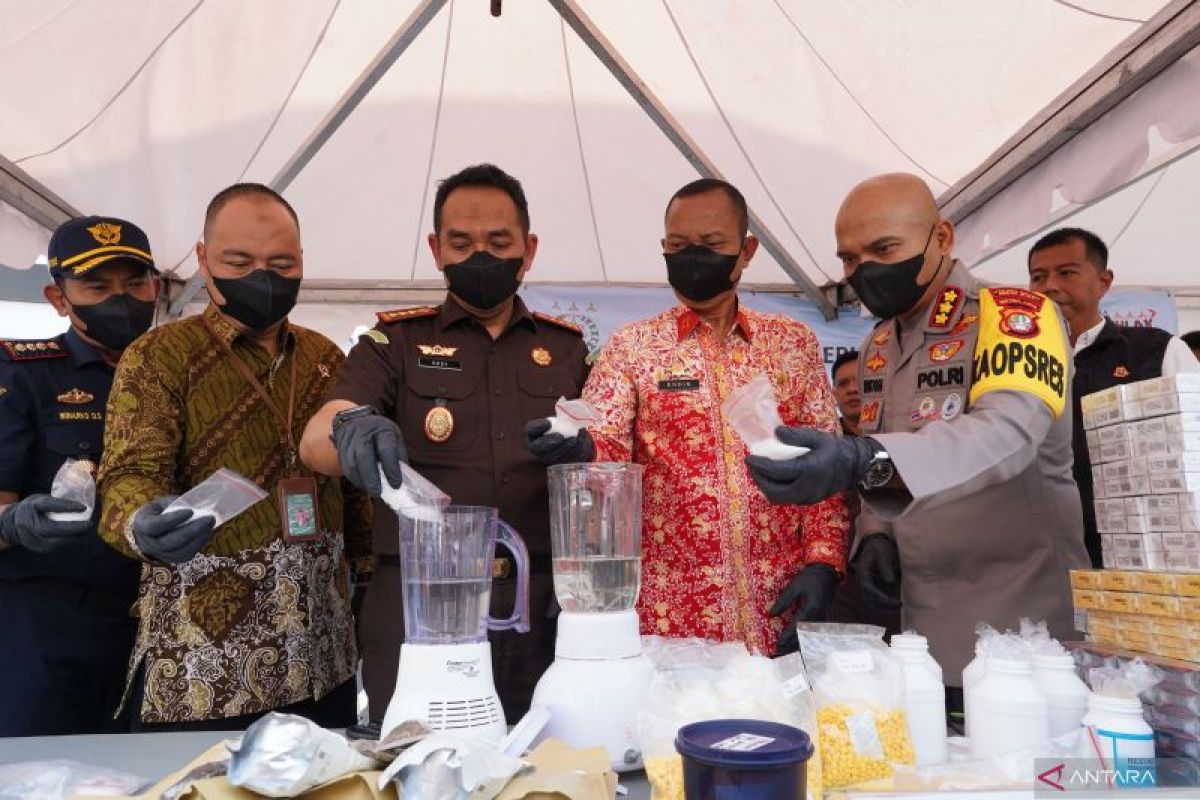 Barang bukti tersebut dimusnahkan dengan berbagai cara seperti di blender untuk sabu. Sedangkan ganja, uang palsu dan obat terlarang dibakar bersama rokok ilegal dicampur bensin.