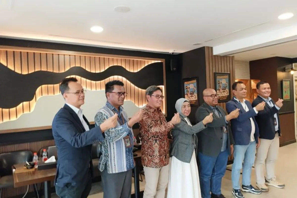 Manajemen PT Pegadaian Kanwil Jakarta I memberikan salam Tring! yang merupakan aplikasi untuk memudahkan masyarakat mendapatkan layanan Pegadaian di dalam acara media gathering di Jakarta, Selasa (16/12/2025). (ANTARA/HO-dok pribadi)