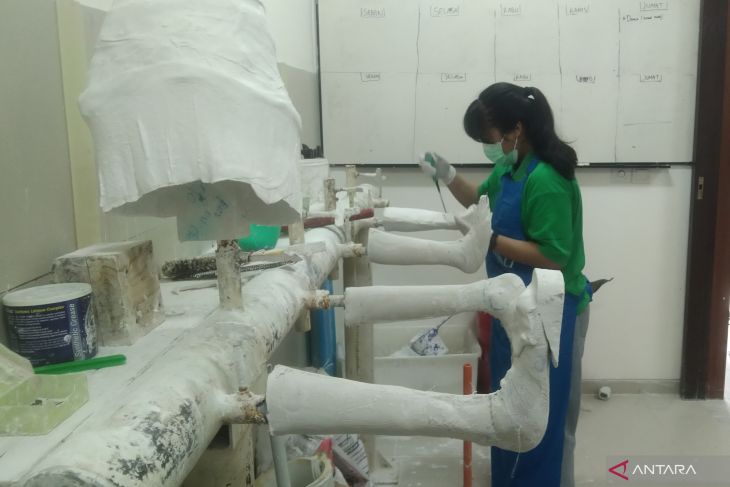 Pencetakan kaki palsu itu menggunakan bahan cairan gip yang diproses hingga dua jam sampai kering.