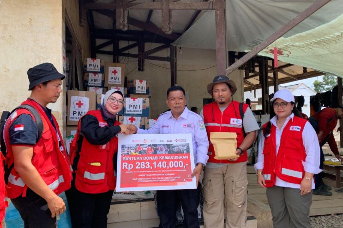 Banda Aceh (ANTARA) - Palang Merah Indonesia (PMI) Kota Bekasi, Jawa Barat, menyalurkan bantuan kemanusiaan senilai Rp283 juta dalam bentuk uang tunai hingga logistik dalam rangka mendukung percepatan pemulihan masyarakat terdampak banjir bandang di Kabupaten Aceh Tamiang.