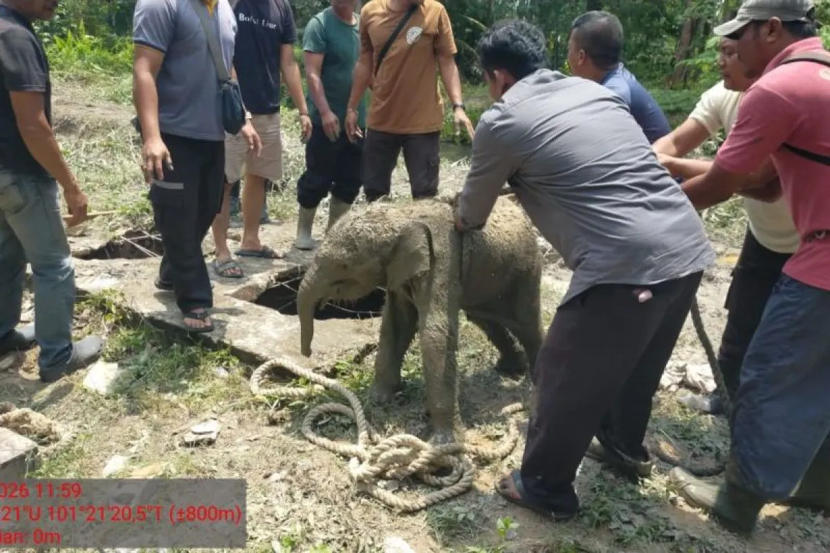 Pekanbaru, (ANTARA) - Balai Besar Konservasi Sumber Daya Alam (BBKSDA) Riau menyelamatkan satu ekor anak gajah terperosok di dalam tangki septik sedalam 2-2,5 meter di Perumahan Karyawan PT Arara Abadi Distrik Tapung, Desa Rantau Bertuah, Kecamatan Minas, Kabupaten Siak.