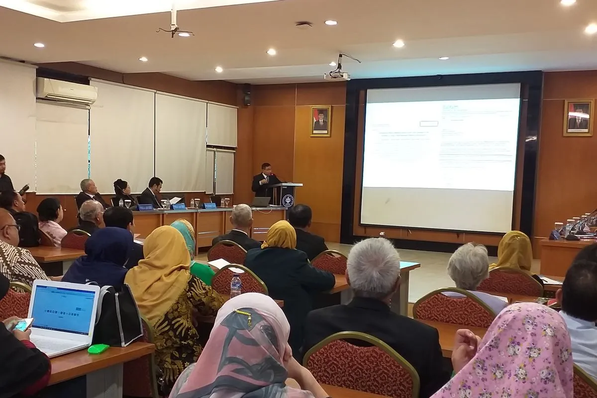 Dalam sidang promosi Doktoralnya, Agus memaparkan ringkasan disertasi di ruang sidang Sekolah Pasca Sarjana, Kampus Institut Pertanian Bogor (IPB) Dramaga, Bogor, Jawa Barat, Rabu (13/3/19).