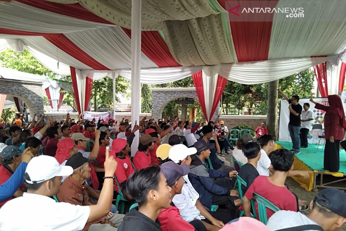 Rapat konsolidasi Relawan Dozer di Desa Karangsambung, Kecamatan Kedungwaringin, Kabupaten Bekasi, Jawa Barat, Rabu (10/4/2019). (Megapolitan.Antaranews.Com/Foto: Pradita Kurniawan Syah)