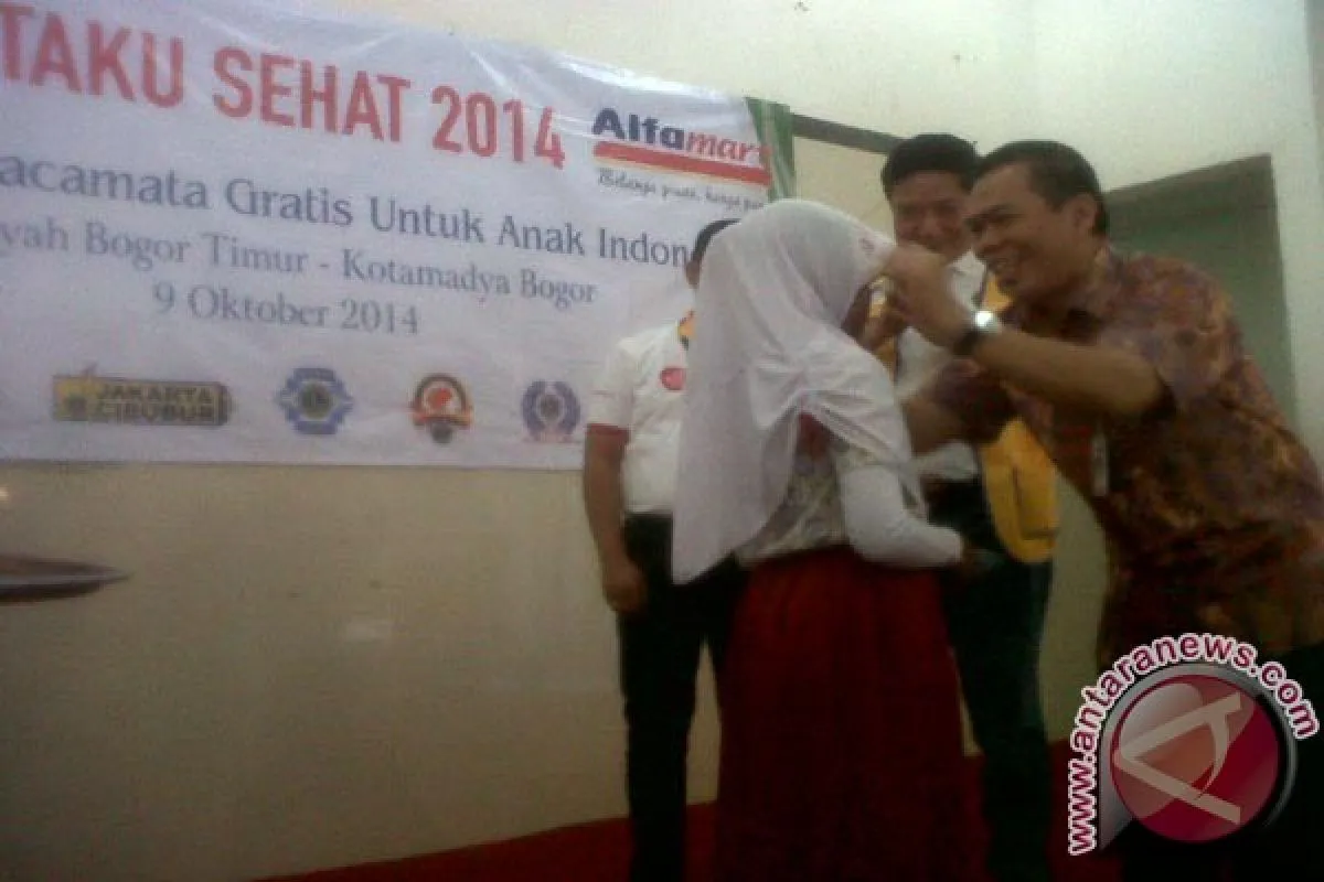 807 siswa dan guru di Kota Bogor Jawa Barat mendapatkan kaca mata gratis lewat program "Mataku Sehat" yang diselenggarakan oleh Yayasan Lions Indonesia bersama PT Sumber Alfaria Triyaja Tbk (SAT) dan Dinas Pendidikan setempat. (Foto Antara/ Laily Rah
