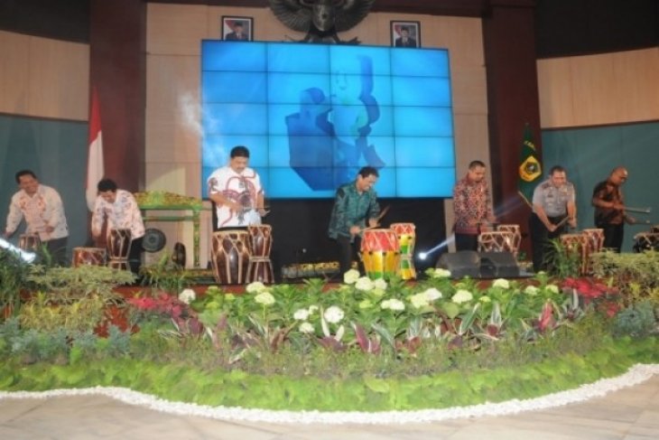 Bogor, 27/4 (Antara) Ketua KPUD Kabupaten Bogor Achmad Fauzi bersama Bupati Rachmat Yasin, Wabup Karyawan Faturachman dan para pejabat muspida menabuh gendang dalam acara di Gedung Tegar Beriman, Cibinong, Jumat, dalam rangka peluncuran Pilkada Kabupaten Bogor yang akan diselenggarakan 8 September 2013 mendatang.