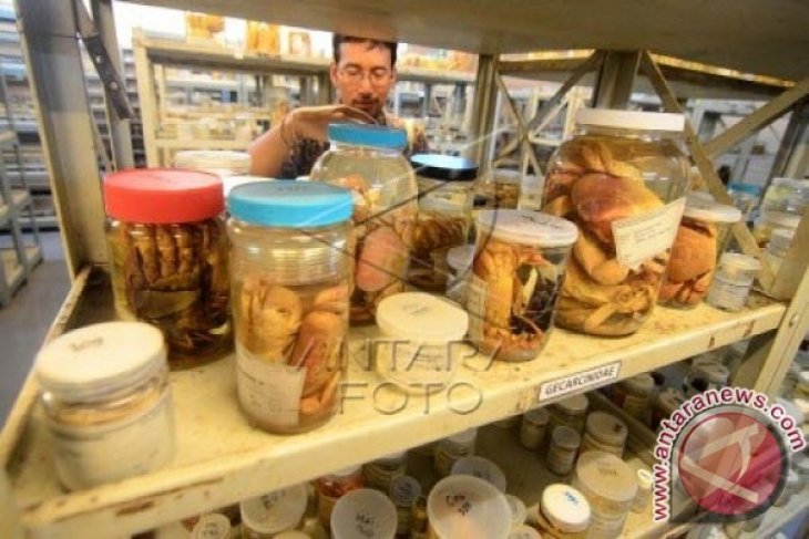 Peneliti bidang zoologi menunjukkan koleksi spesies fauna disela-sela Seminar Hari Keanekaragaman Hayati 2015 di Pusat Penelitian Biologi LIPI Komplek Cibinong Science Center (CSC) , Cibinong, Bogor, Jabar, Selasa (26/5). CSC memiliki sekitar dua juta spesimen botani dan mikroba yang dikoleksi sejak tahun 1841 dan berdasarkan jumlah dan keanekaragaman koleksinya maka CSC merupakan yang terbesar ketiga di dunia setelah gedung Herbarium di Leiden belanda dan Qyu di Inggris. (Foto Antara/Jafkhairi)