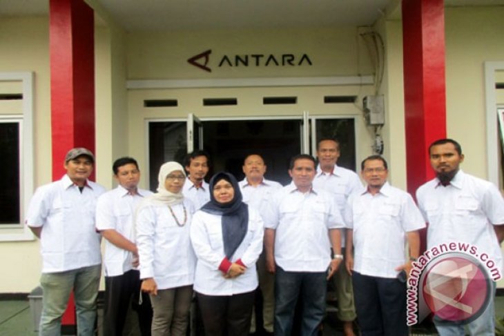 Para Peserta -Pelatihan Penguatan Kapasitas Jurnalis dan Wacana Jurnalisme Positif-- di Kantor LKBN Antara Biro Penyangga Jakarta (BPJ) di Bogor, Jawa Barat-2015 sedang foto bersama. (ANTARA FOTO/Arif Firmansah/Dok).