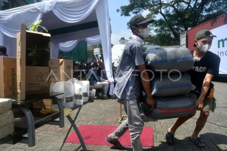 Pekerja melakukan persiapan pelepasan ekspor perdana produk sekam bakar ke Belanda di Minaqu Indonesia, Bogor Nirwana Residence, Kota Bogor, Jawa Barat, Rabu (30/4/2025). Minaqu Indonesia secara resmi melepas ekspor perdana produk sekam bakar yang merupakan media tanam ramah lingkungan dengan jumlah mencapai 10 ton yang dikemas dalam 1500 kantong ke Belanda. ANTARA FOTO/Arif Firmansyah/foc.